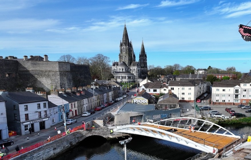 The new bridge is scheduled to open to the public in early 2026. The bridge will provide a safe and convenient connection between the City Centre and communities to the west including key destinations such as St Fin Barre’s Cathedral, UCC Etc.