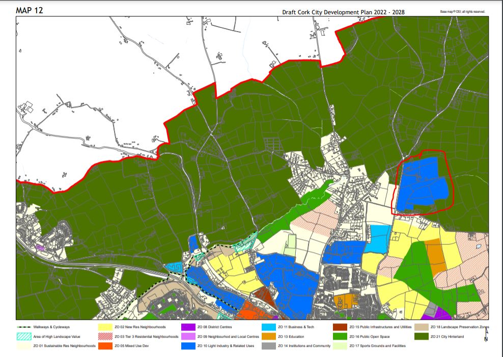 Hi there, as per the attached map, I would like to propose a change from the "Light Industry and Related uses" zoning for the area circled in red to "New Res neighbourhoods".