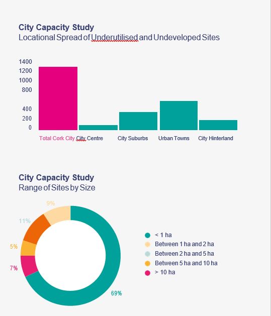 Cork City Council is currently undertaking a City Capacity Study 4 to help identify parcels of lands currently zoned, both within the built-up area and ‘greenfield’ land, that have development potential. To date, this study has identified over 1,200 Ha. of zoned lands throughout the city which are considered underutilised or undeveloped. In addition to these lands, further sites have been identified which have development potential, but the delivery timeframe is difficult to ascertain given the nature of existing uses (e.g. low order industrial parks, older institutional uses, etc.).