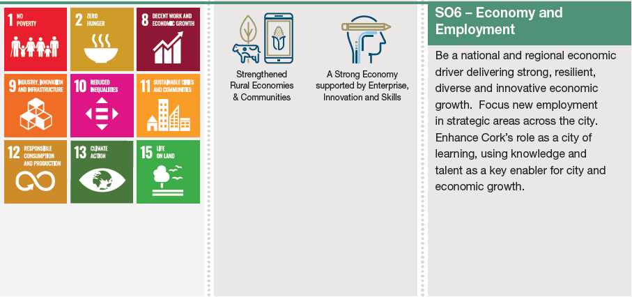A strong and diverse economySupport Cork City’s role as the economic driver for the region and the creation of a strong, resilient, diverse and innovative economy. |